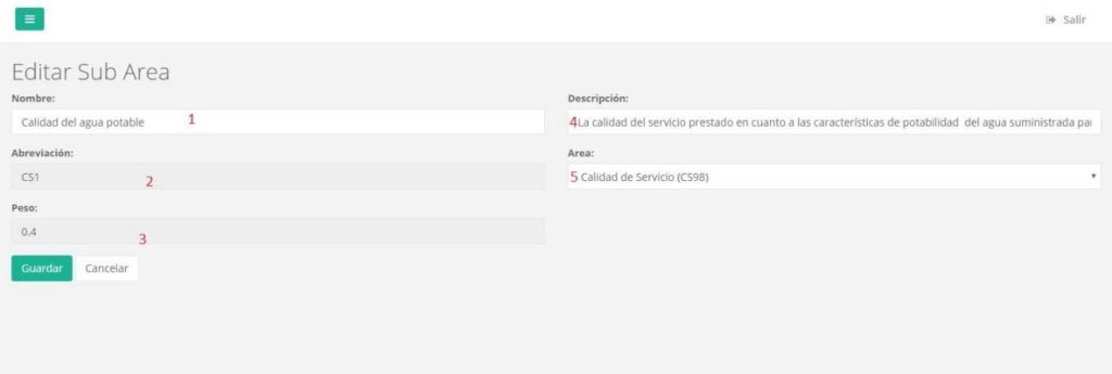 Aquí en subáreas , se podrá ver que subáreas existen y se podrán editar algunos campos que indicaré.
